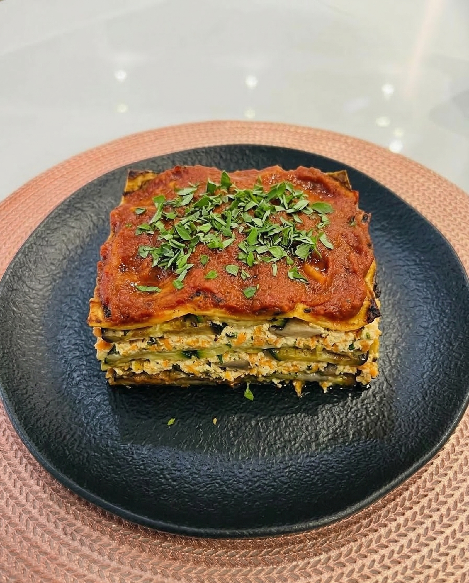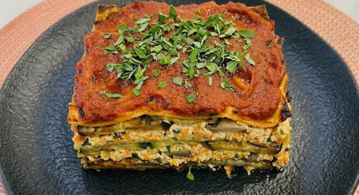 - Montagem da Lasanha: Em uma forma, comece com uma camada do molho de tomate. Em seguida, coloque uma camada de legumes refogados, uma camada de tofu e repita até preencher a forma. A última camada deve ser de molho de tomate.